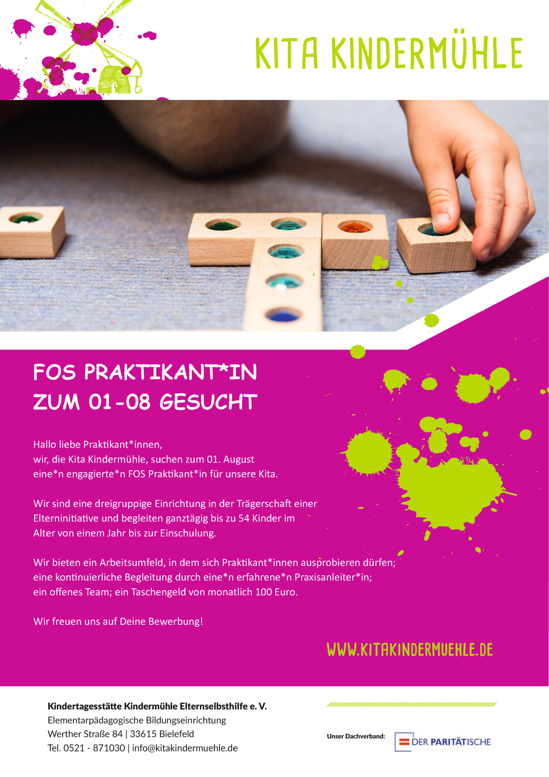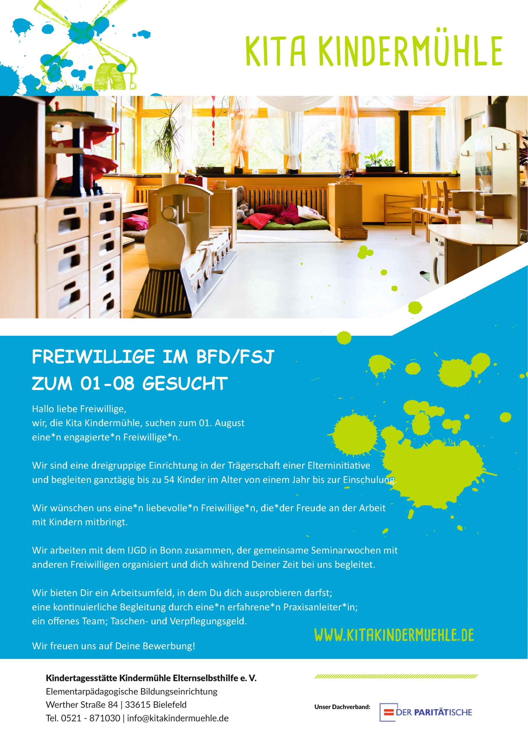 Darüber hinaus sind wir offen für Initiativbewerbungen. Diese gerne per E-Mail an info@kitakindermuehle.de
